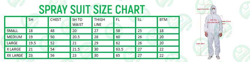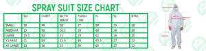 Spray Suits Size chart